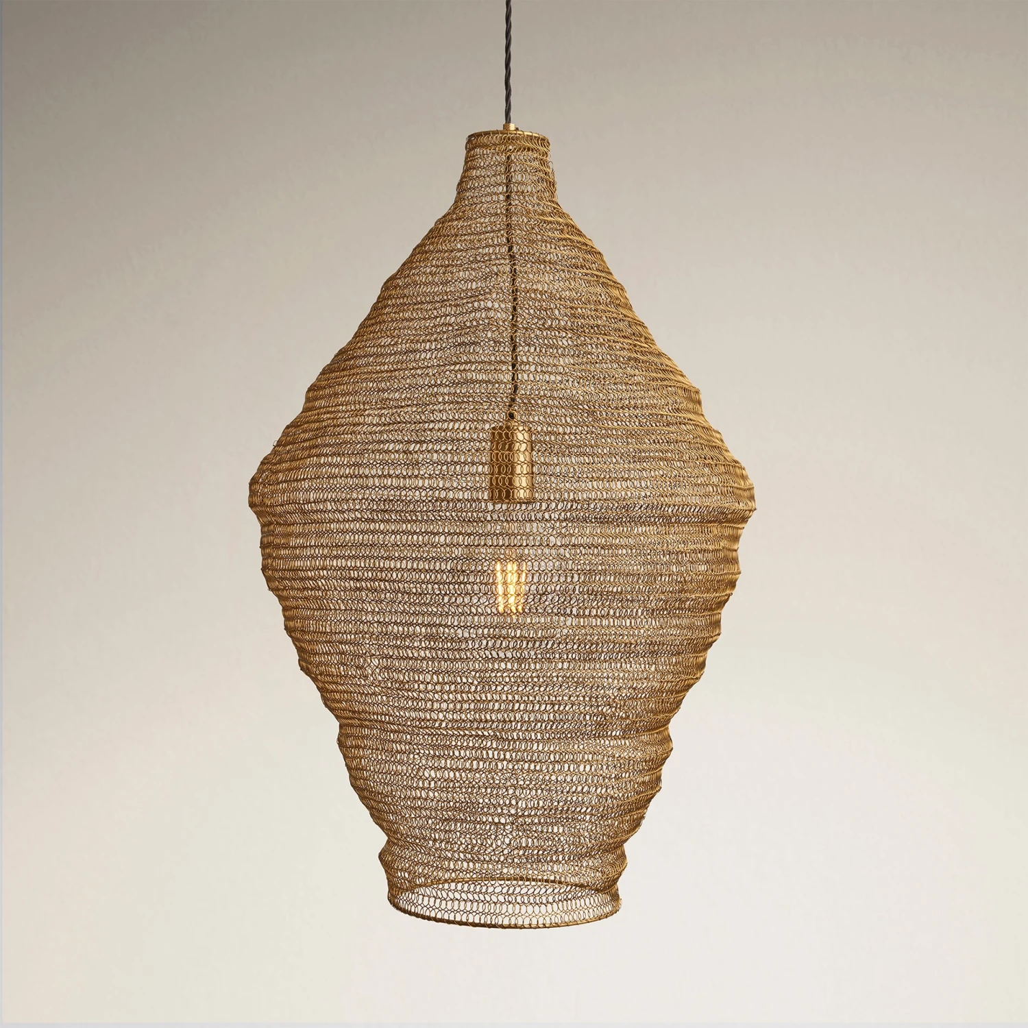 Elevate your space by adding depth and texture with our handmade and handcrafted metal mesh Beehive Wire Cage Pendant in our Diamond shape and stunning Brass finish.
