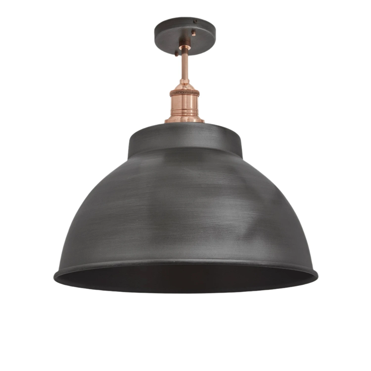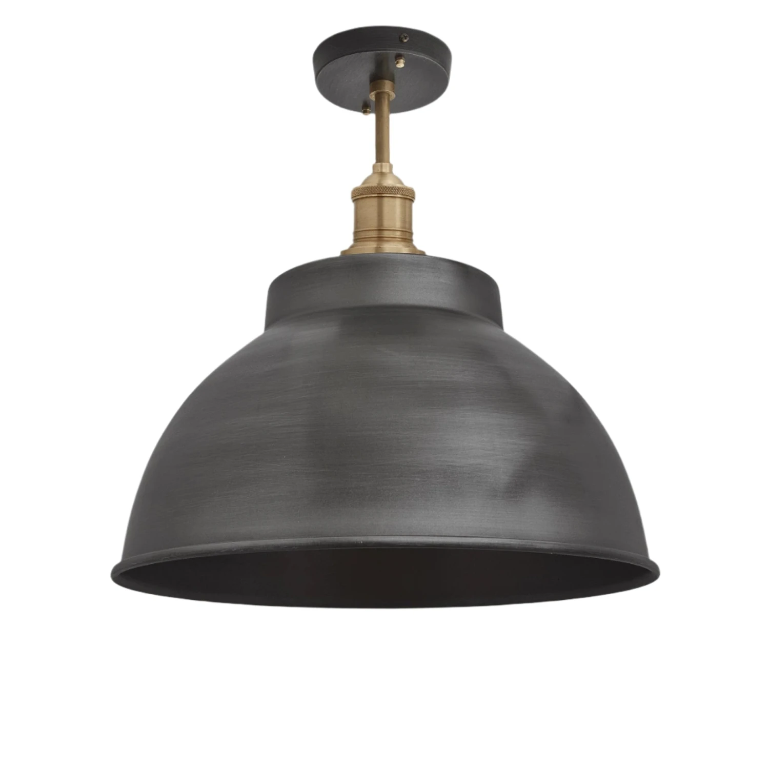This handcrafted Brooklyn Dome Flush Mount is available in a variety of finishes Brass, Brass & Pewter, Light Pewter, Copper and Copper & Pewter. It works particularly well when mounted in pairs or groups of three, and you can make the lighting yours by choosing from an array of wall holders. To keep your design consistent throughout your spaces we have the available matching Brooklyn Wall Lights in 8 Inch and Pendant Lights which are available in various sizes, including 8 Inch, 13 Inch, 18 Inch and 23.5 Inch fixtures. Our Dome Lights are versatile products that can be used almost anywhere and will complement both classic and contemporary décor.