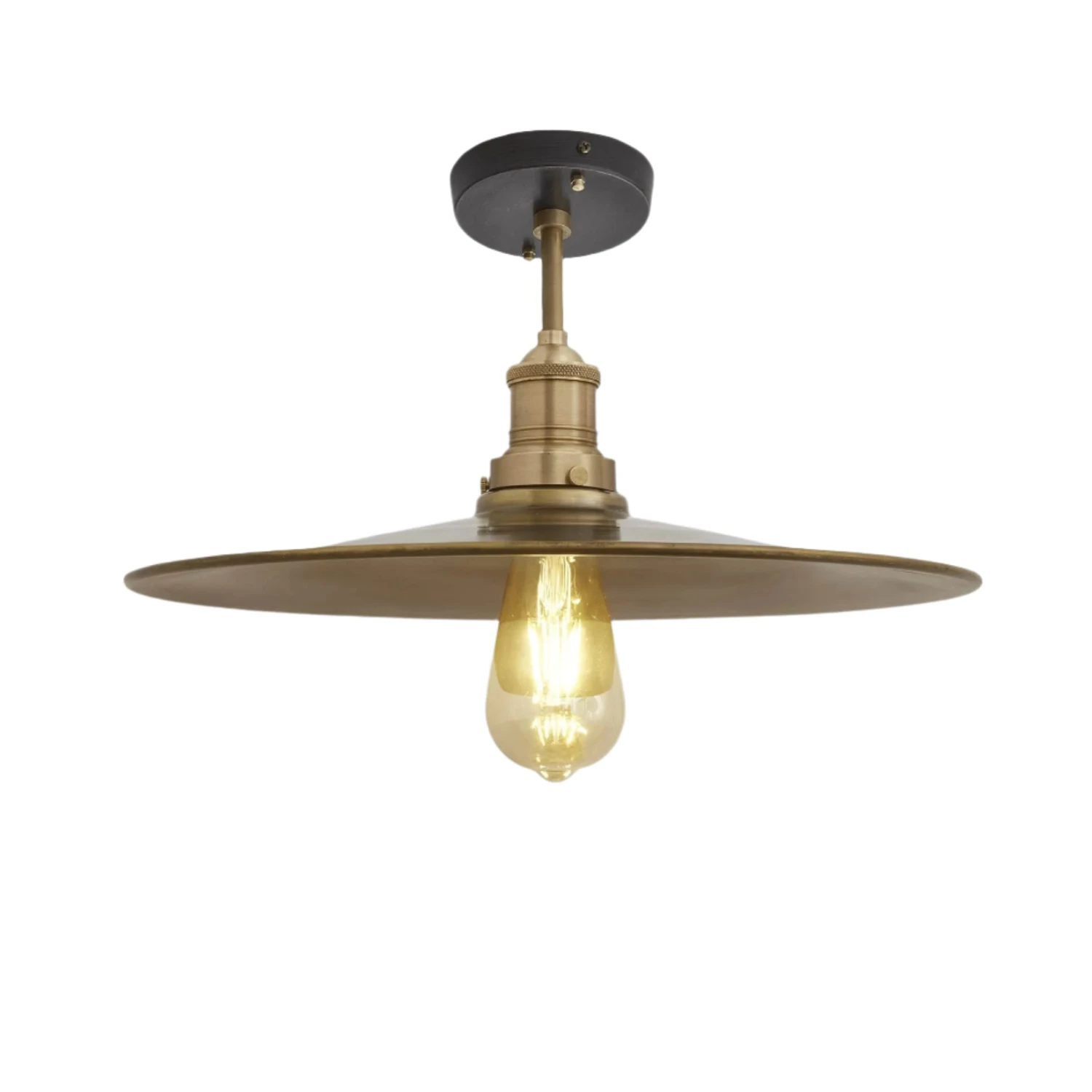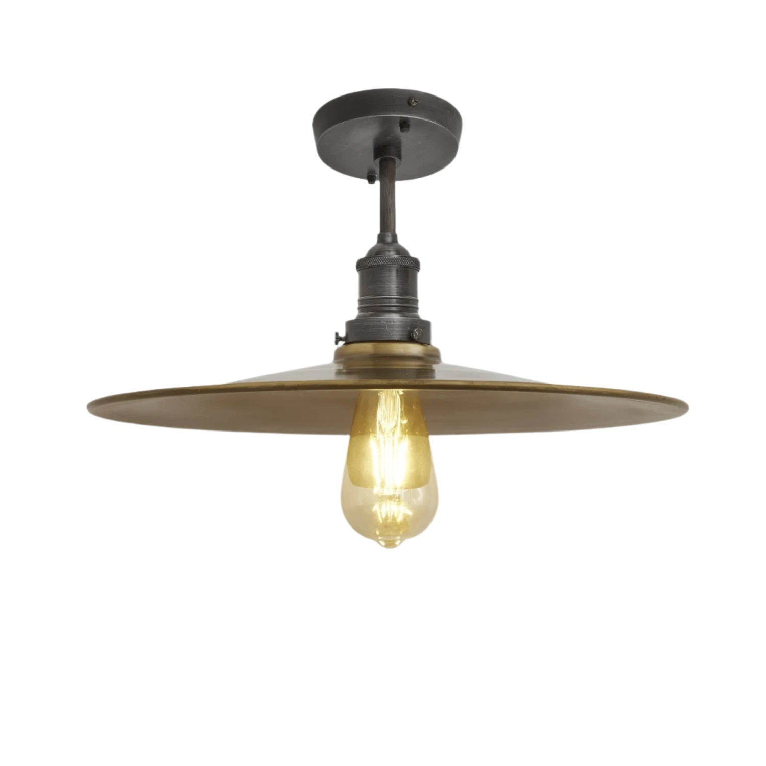 The industrial trend is transforming the interiors of homes and businesses around the UK and beyond. Our Brooklyn Flat 15 Inch Flush Mount is also available with a matching Pendant. This product is also available in Pewter and Copper. This shade also comes in a smaller 8 Inch Flush Mount in Brass, Pewter and Copper.