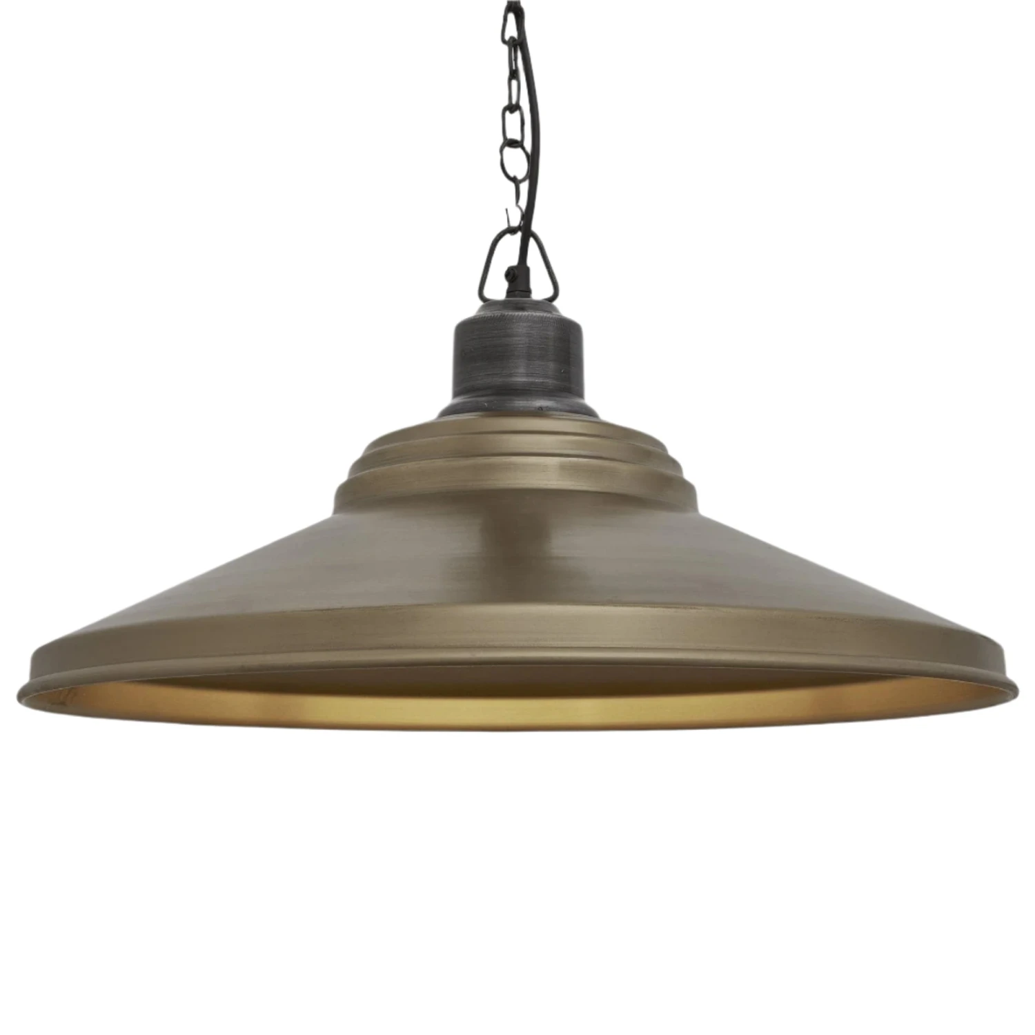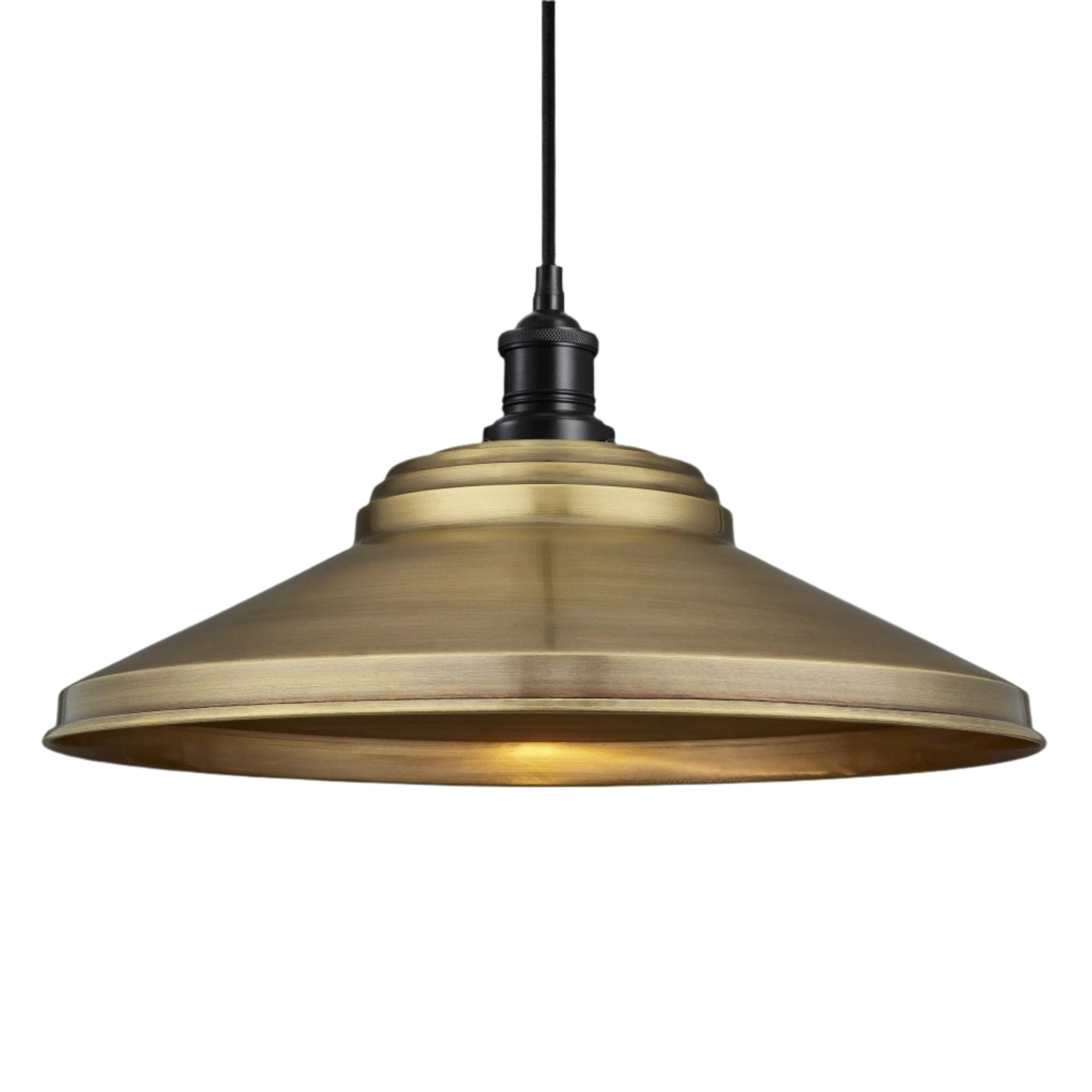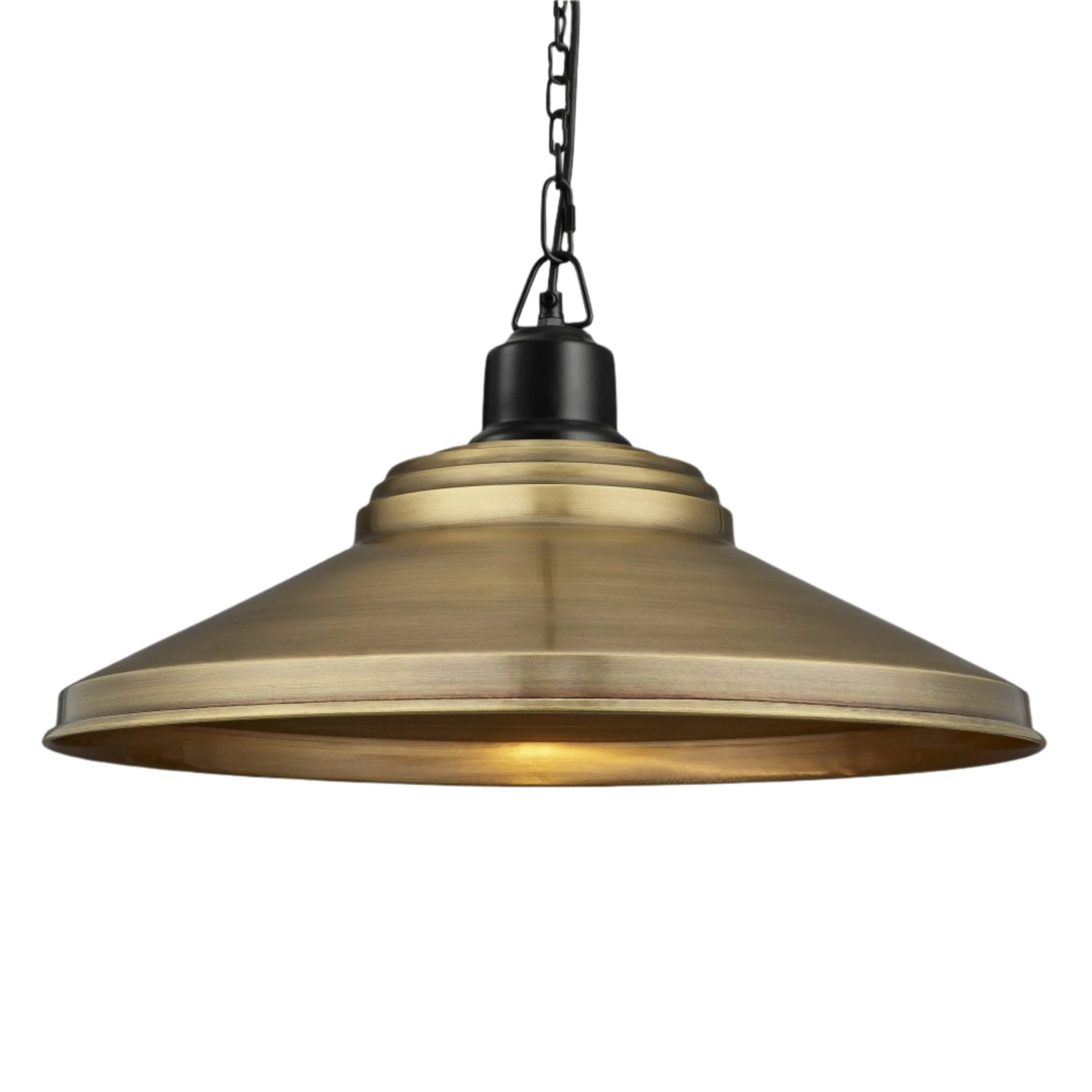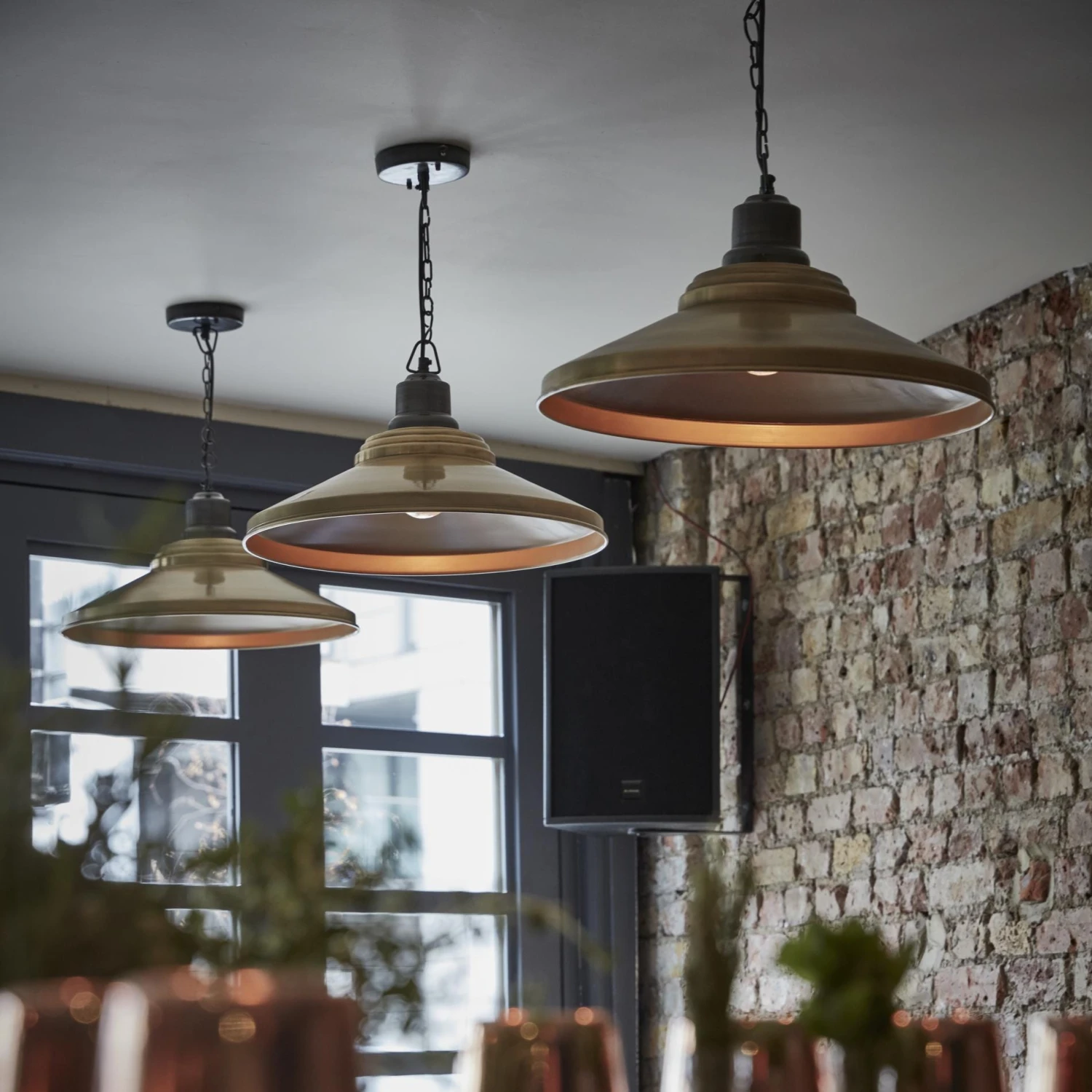 The Step 18-inch Pendant is also available in Brass or Pewter. This light is also available as a flush mount in Pewter. The versatile light has a slightly smaller variation of 16-inch pendant in Brass and Pewter available and can be used together for the ultimate lighting combination. Its looks great with a 1m Black Round Fabric Flex and can be used to become the centre piece of any space.
