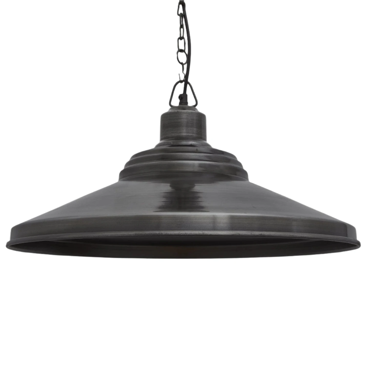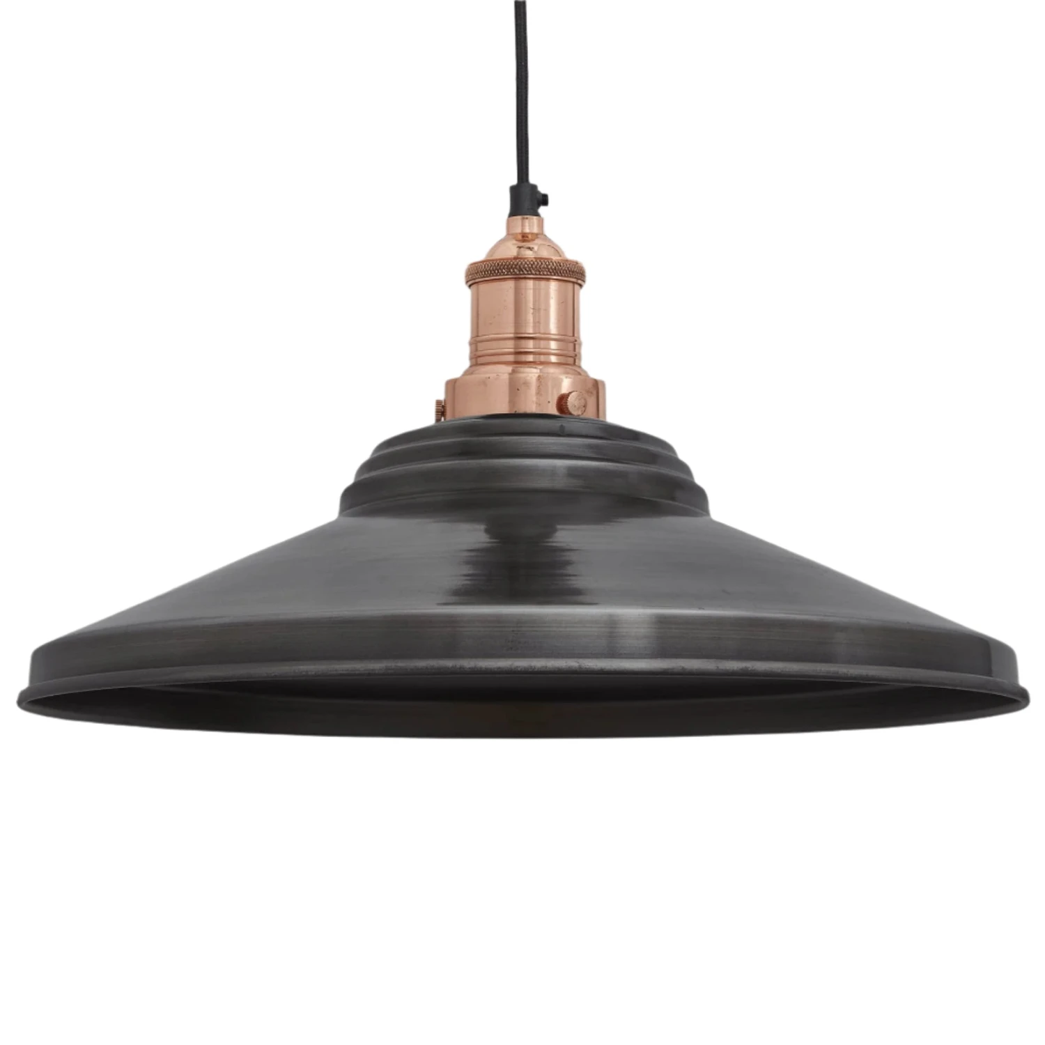 The Step 18 Inch Pendant is also available in Brass. This Light is also available as a Flush Mount. The versatile Light has a slightly smaller variation of 16 Inch pendant in Brass and Pewter and can be used together for the ultimate lighting combination. It looks great with a 1 M Black Round Fabric Flex and can be used to become the centrepiece of any space.