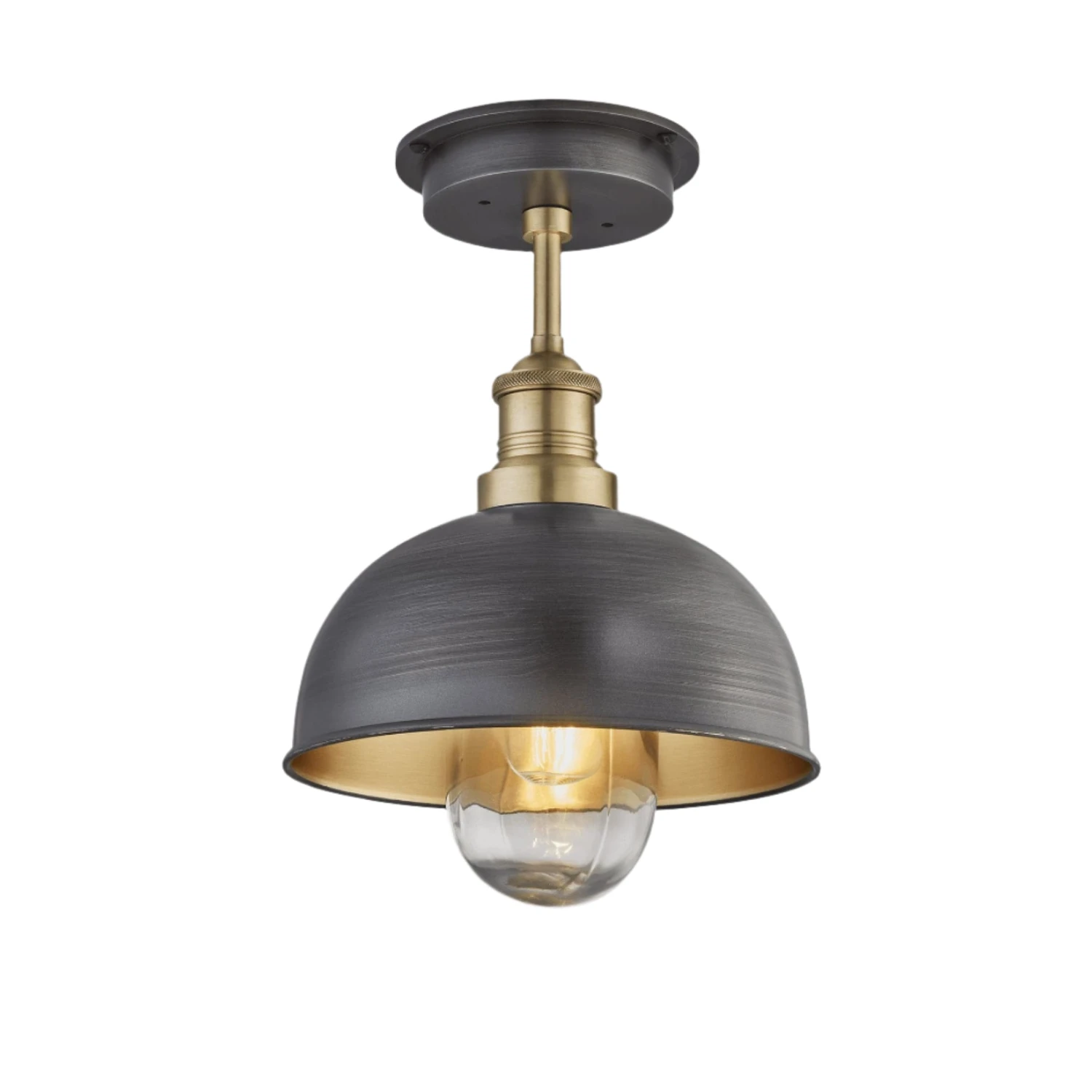 You can bring your interior design themes out, as homes already featuring the Indoor Brooklyn Dome Collection can maintain consistency for outdoor areas. The versatile Light is also available in the larger variation of 13 Inch. The high-quality, handcrafted nature of the raw Pewter & Brass finish will complement any décor.