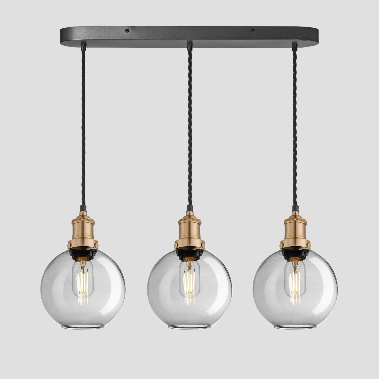 Brooklyn Tinted Glass Globe 3 Wire Cluster Lights – 7 Inch – Smoke Grey