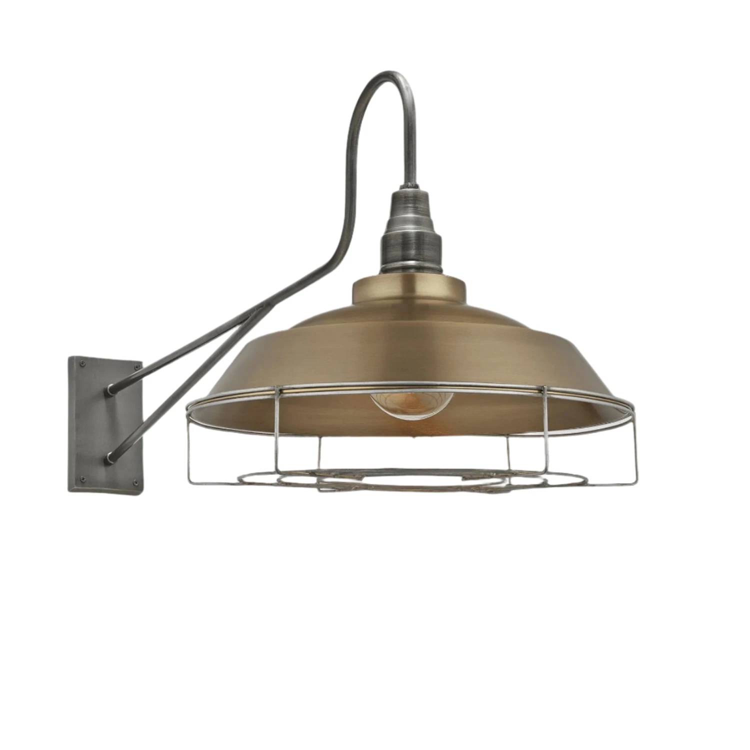 Our Long Arm Step 16 Inch Wall Light in Brass is the perfect addition to any space, this fixture is also available in our Pewter and Light Pewter metallic finishes.