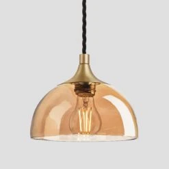Sleek Cylinder Tinted Glass Dome Pendant Light – 8 Inch – Amber