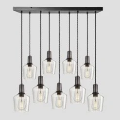 Sleek Tinted Glass Schoolhouse 9 Wire Cluster Lights – 5.5 Inch – Smoke Grey