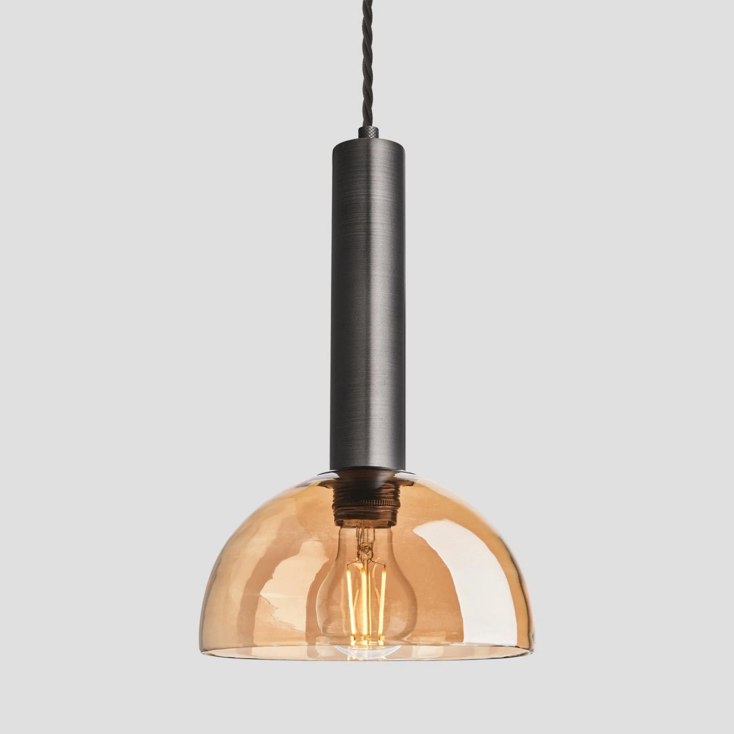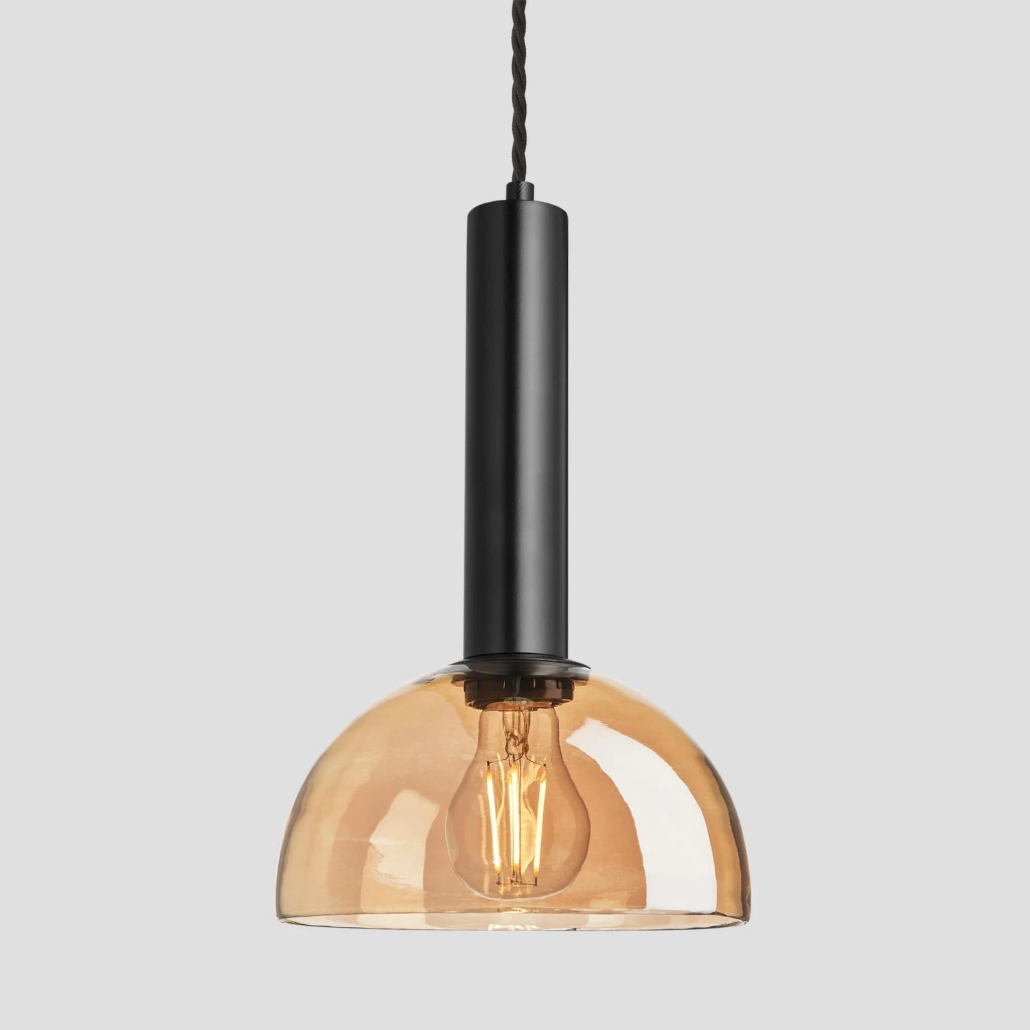 Sleek Cylinder Tinted Glass Dome Pendant Light – 8 Inch – Amber