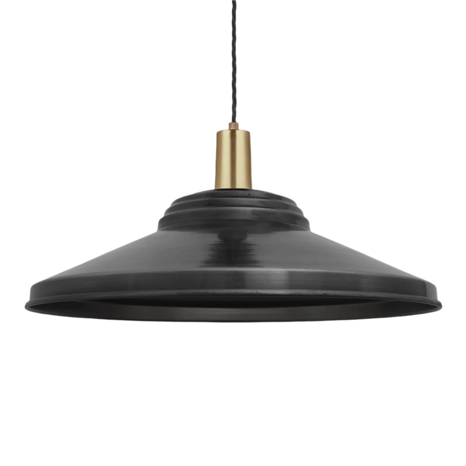 Our Sleek Step 18 Inch Pendant is also available in Brass. The beautiful Light is available in a slightly smaller variation of 16 Inch Pendant in Brass, Pewter and Light Pewter and can be used together for the ultimate Lighting combination, also with a 1 M Black Twisted Fabric Flex. Perfect for any space while providing that modern industrial look.