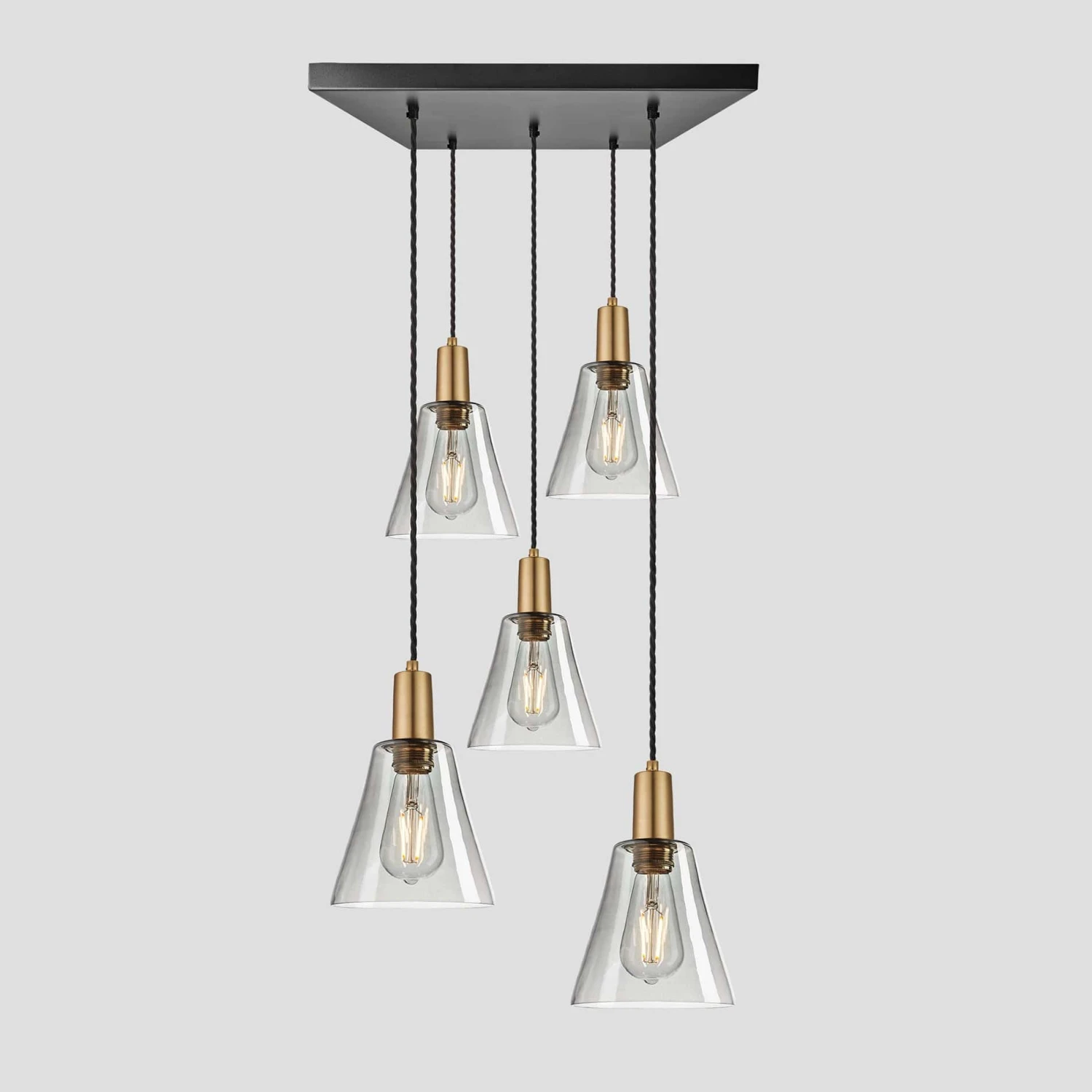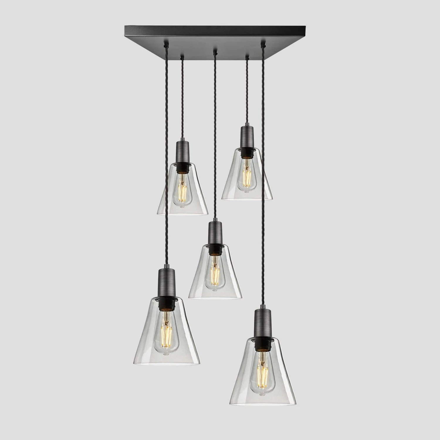 Sleek Tinted Glass Flask 5 Wire Square Cluster Lights – 6 Inch – Smoke Grey